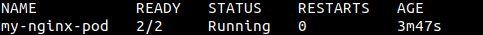 kubectl get pods를 통해 포드안에 두개의 컨테이너가 실행중인것을 알 수 있다.